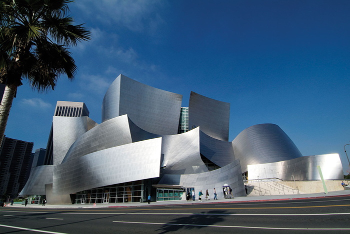 o criador do império família dos desenhos animados de Walt Disney há muito tempo queria construir em sua honra, digno das avaliações de construção mais elevados, e doou para a sua construção de 50 milhões de dólares. Como resultado, com a abertura da próxima obra-prima de Frenka Geri em 2003, a principal cidade da Califórnia tem encontrado o seu novo símbolo. Vale a pena notar que, em adição à expressão externo, salas de concerto tem propriedades acústicas que, em muitos aspectos, superiores a outros sítios conhecidos no mundo.