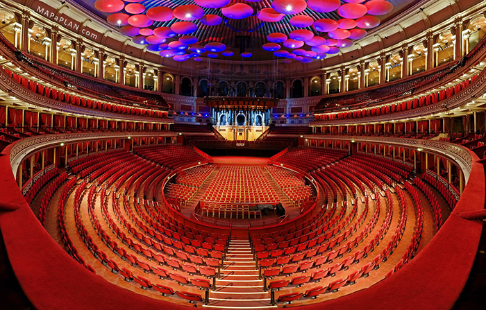 A mais prestigiada sala de concertos do Reino Unido, "Royal Albert Hall", em Londres, foi construída em honra do príncipe Albert em 1871. A popularidade desta área falam eloquentemente figuras - a cada ano no "Albert Hall", realizada cerca de 350 eventos culturais, incluindo concertos de música clássica, óperas e balés, concertos de caridade, cerimônia de premiação e banquete. Fachada elíptica em termos de edifício em tijolo vermelho é decorado com um friso com 16 esculturas, cada um dos quais representa uma determinada área da ciência e da arte. Coroas este belo monumento de arquitetura vitoriana, uma cúpula de vidro enorme na armação openwork de ferro fundido.
